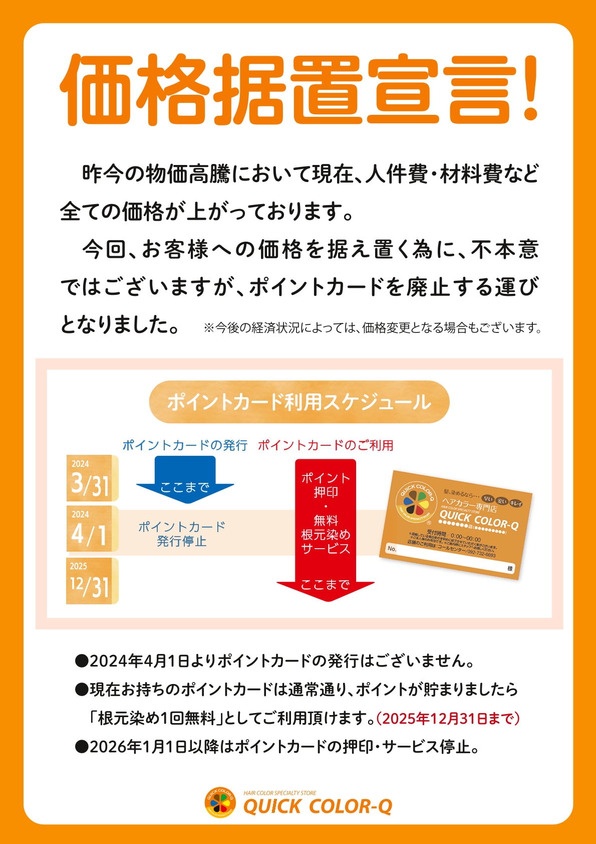 いつも、ヘアカラー専門店 クイックカラーQ をご利用くださり、誠にありがとうござい ます。